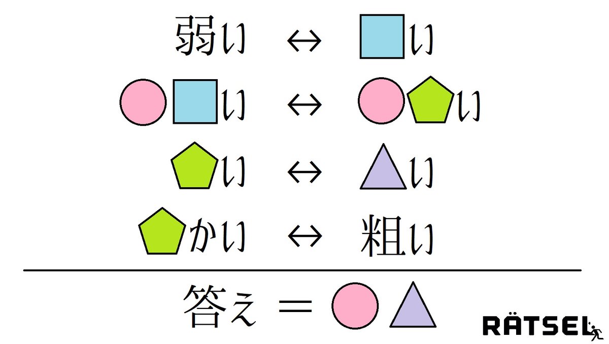 すなわち、「●=マ、○=ス、◎=ラ」として答えに当てはめていくと「マラカス」となり、答えは「マラカス」です。