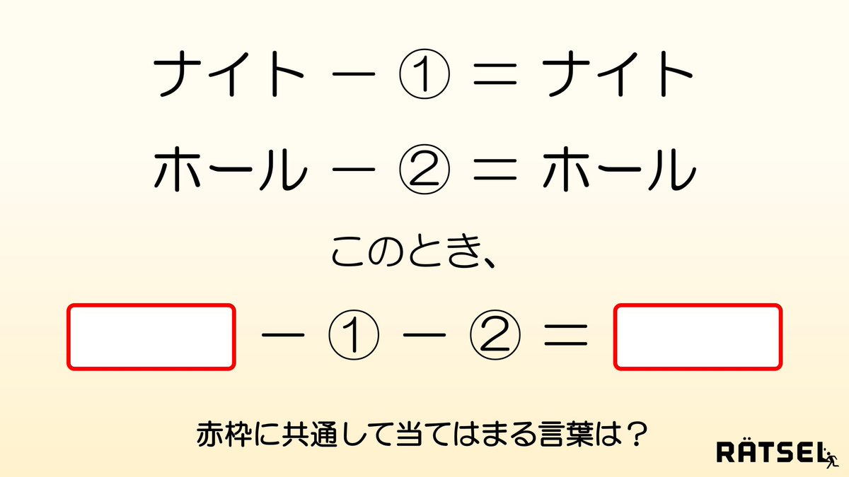 ナイトは「knight(騎士)」「night(夜)」の二つがあり、「knight - k = night」というのが成立します。よって?はkとなります。