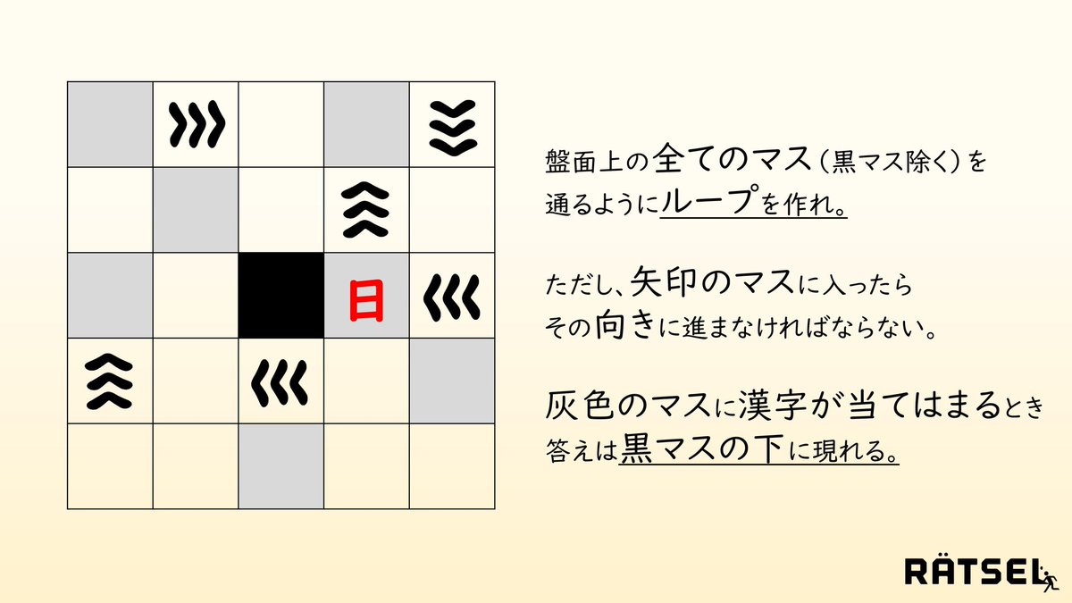 しかし、黒マスの下には「火」だけではなく矢印もありますので、それぞれを組み合わせれば「災」となります。